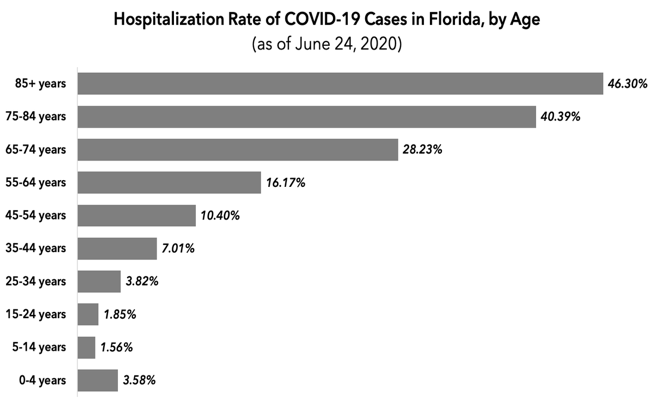 Last week, Florida released a comprehensive report that summarizes many key Covid-19 statistics – including the number of hospitalizations.[i] Since the beginning of the pandemic, state hospitalization figures have been difficult to locate – some do not release the numbers.