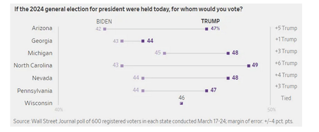 For example, the WSJ poll found 47% of Arizona registered voters would vote for Trump and 42% for Biden.